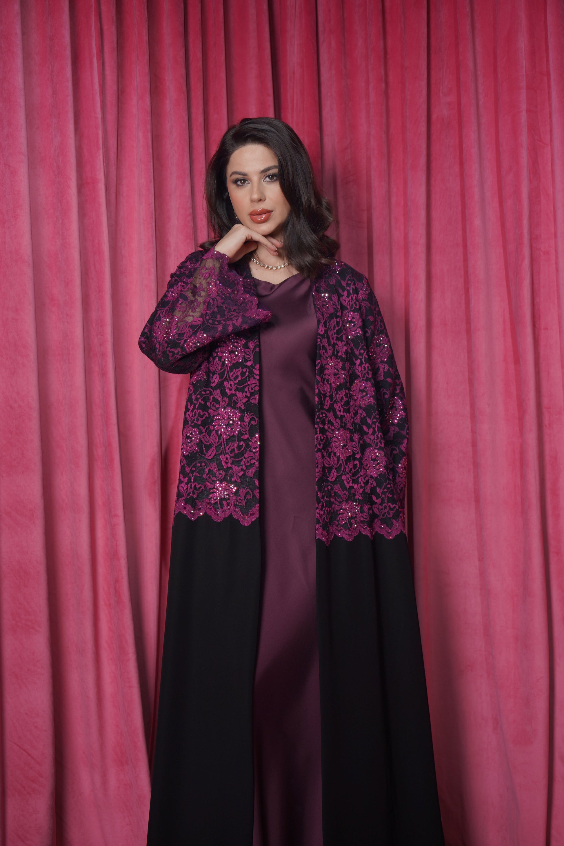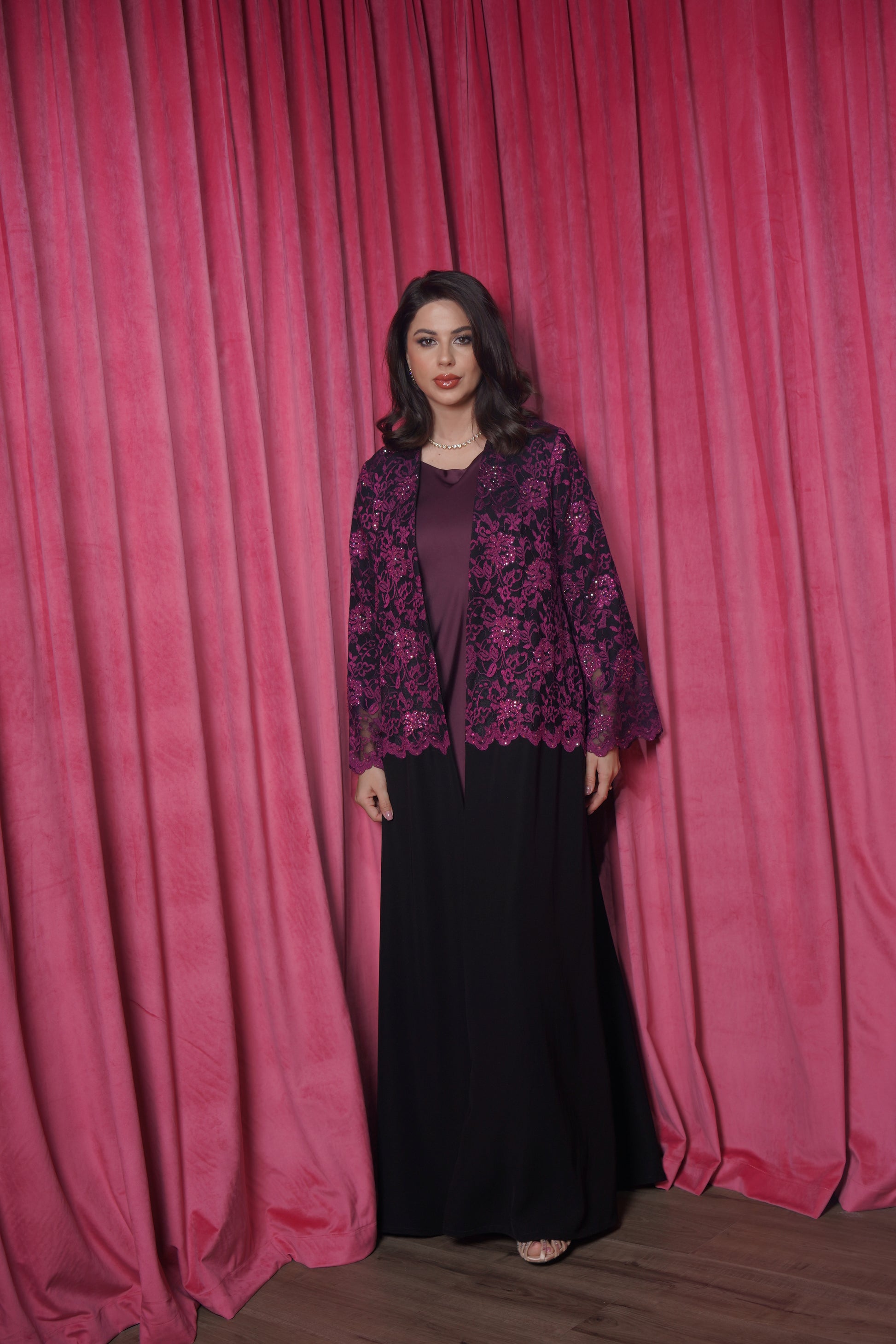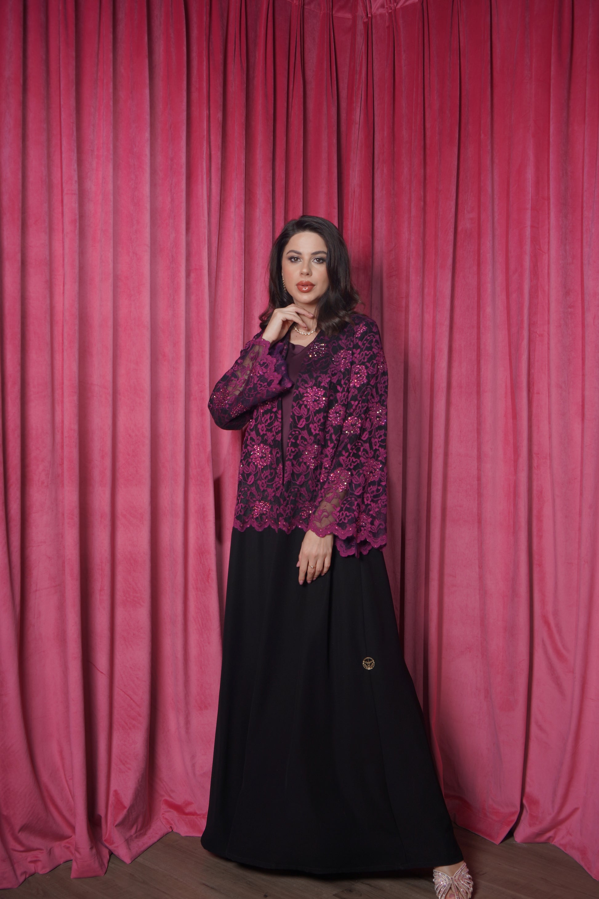 • Rich crepe fabric in black and burgundy color dantel combination.