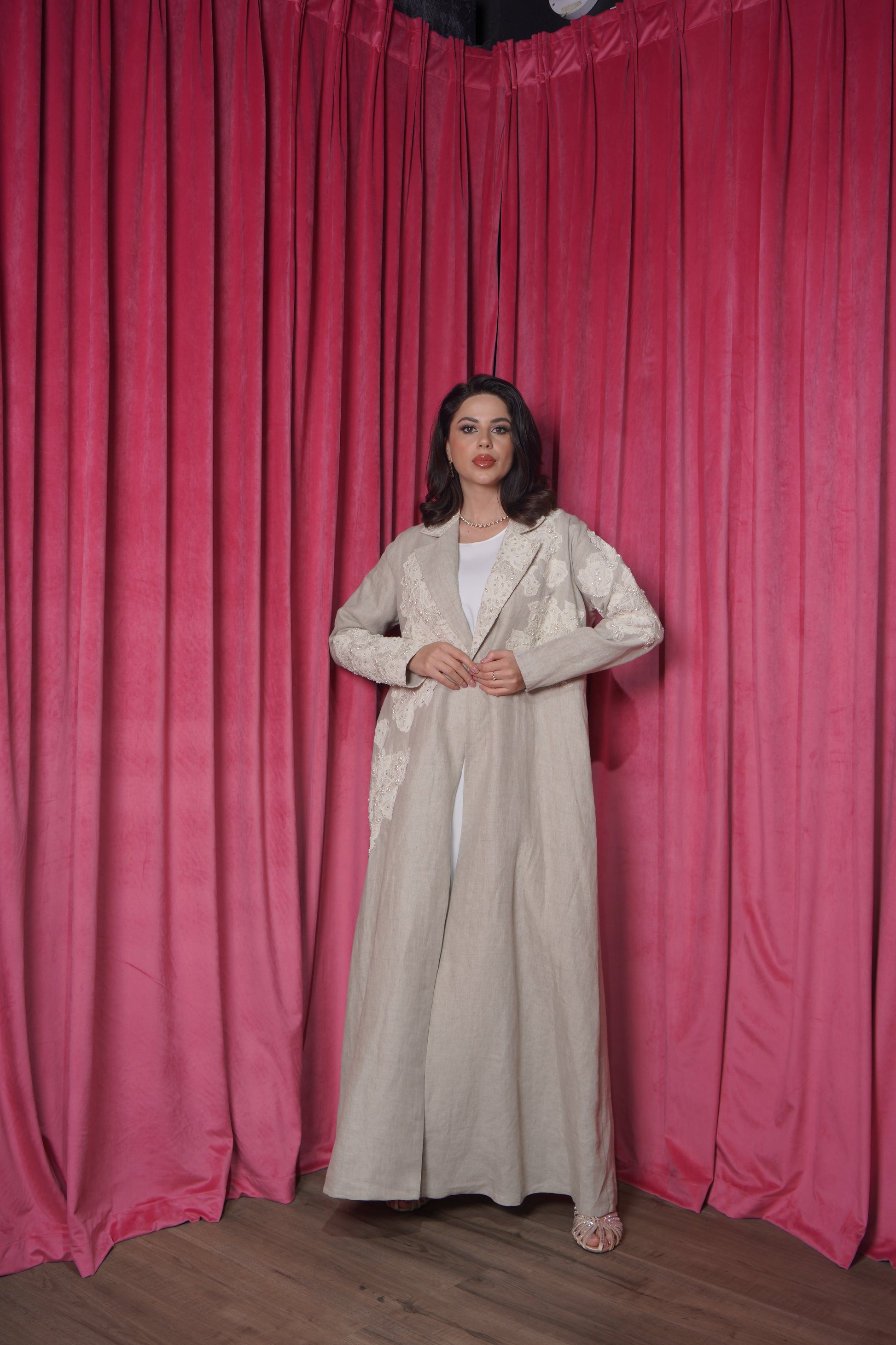 • Linen fabric in sand color.