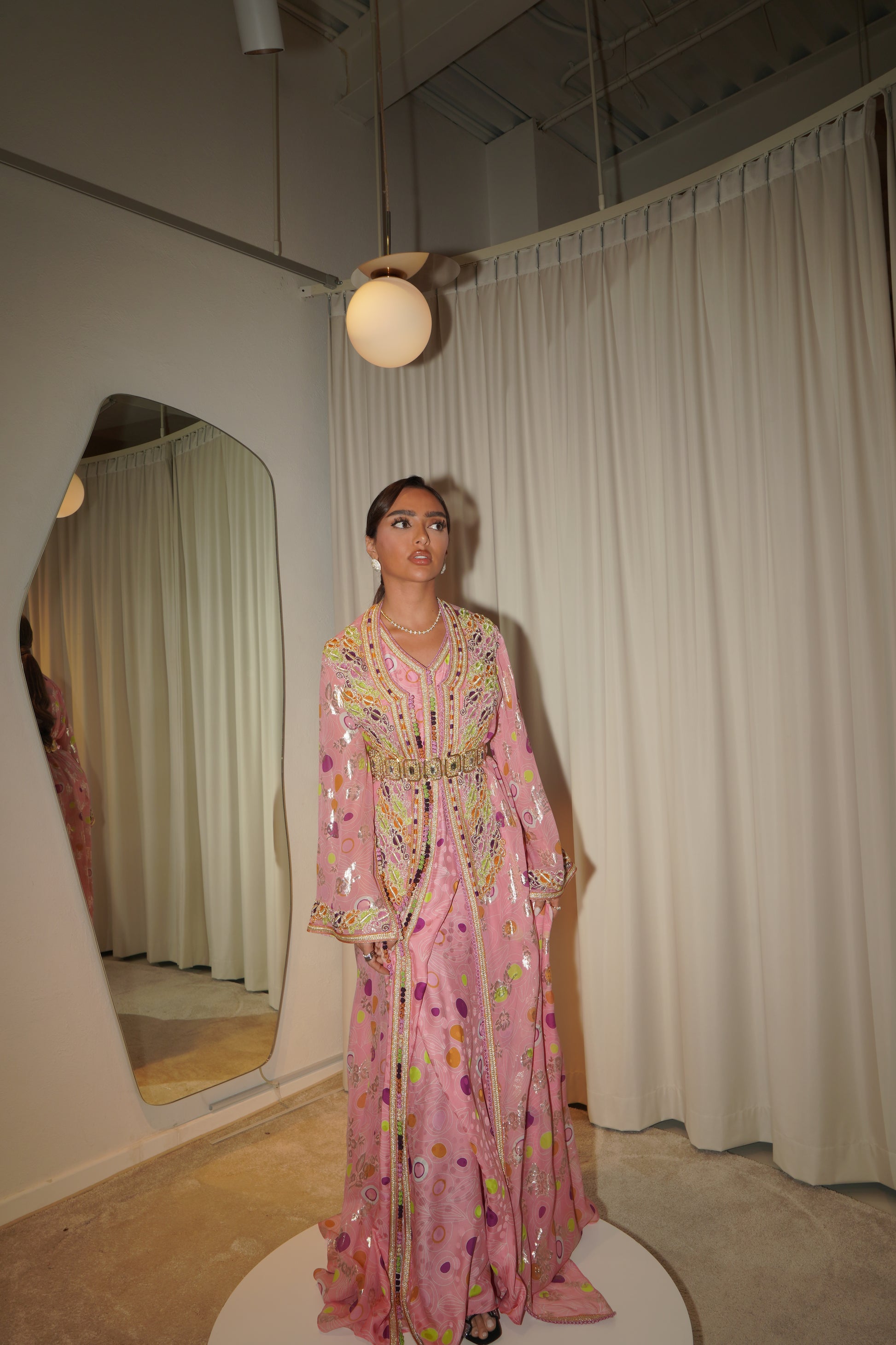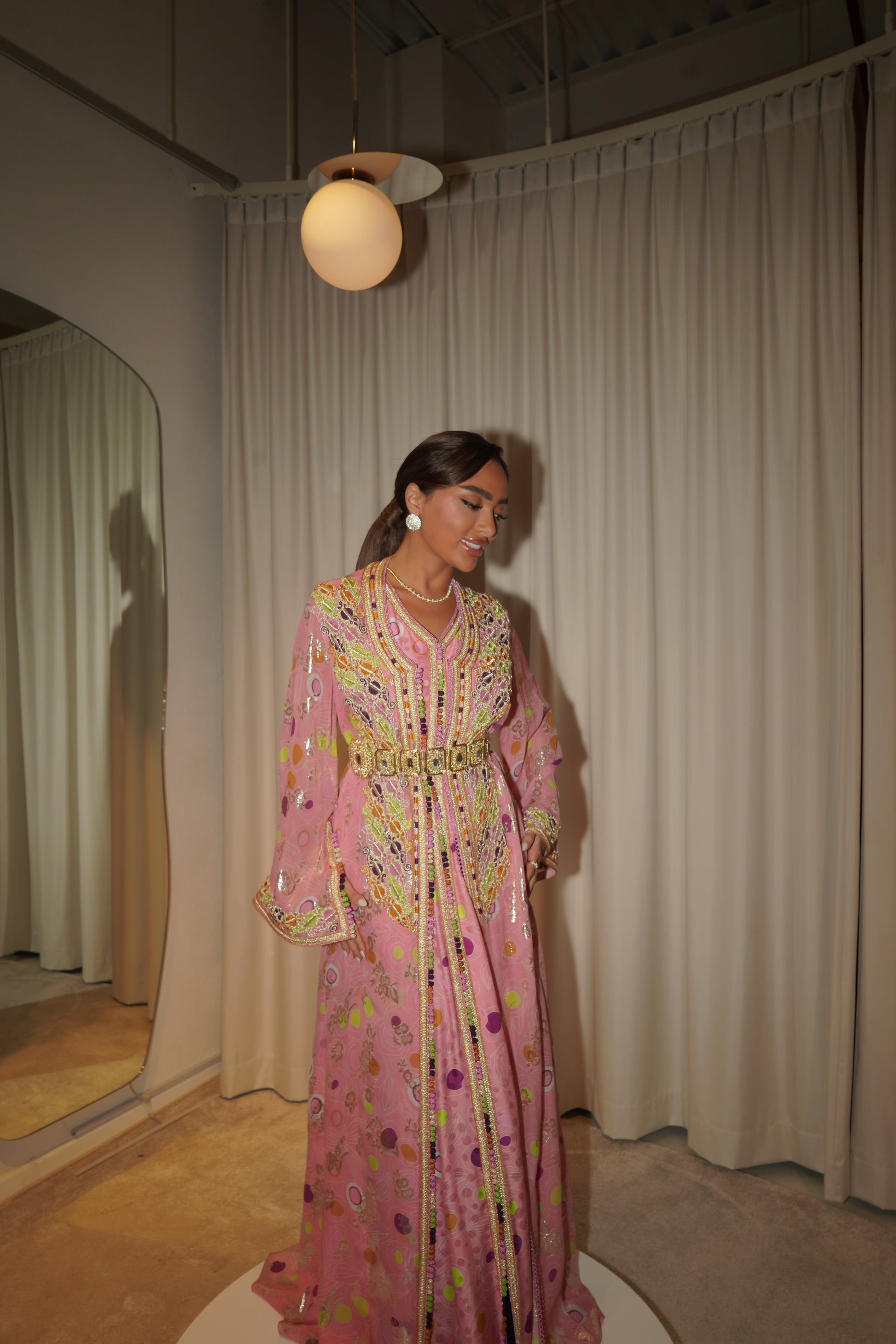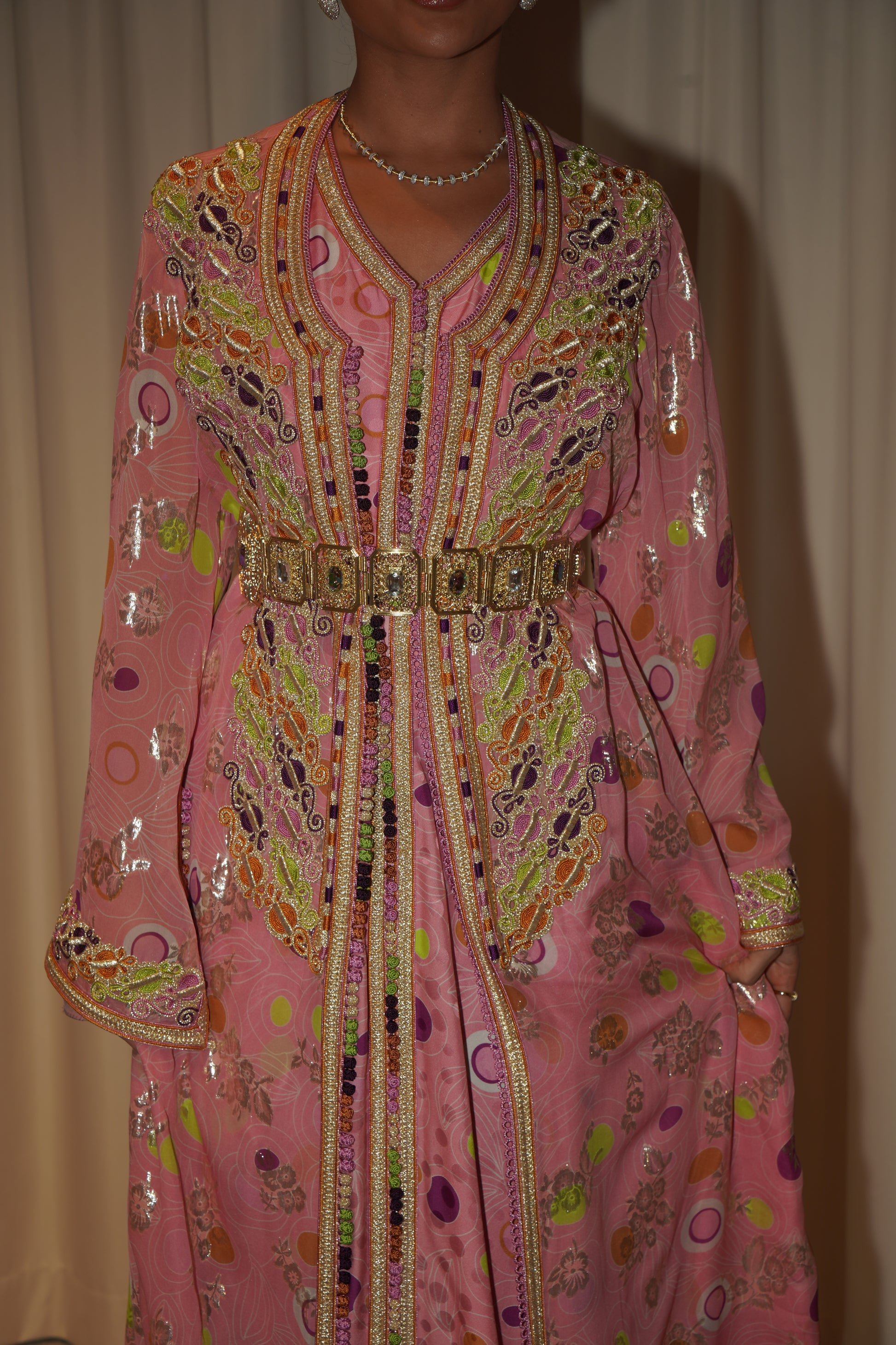 • Intricately handcrafted with moroccan embroidery details matched with Moroccan belt.